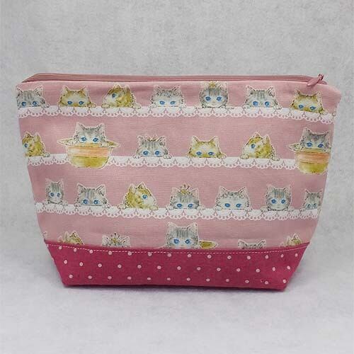 ハンドメイド 猫&水玉柄立体ポーチ 22cm G ネコ キャット