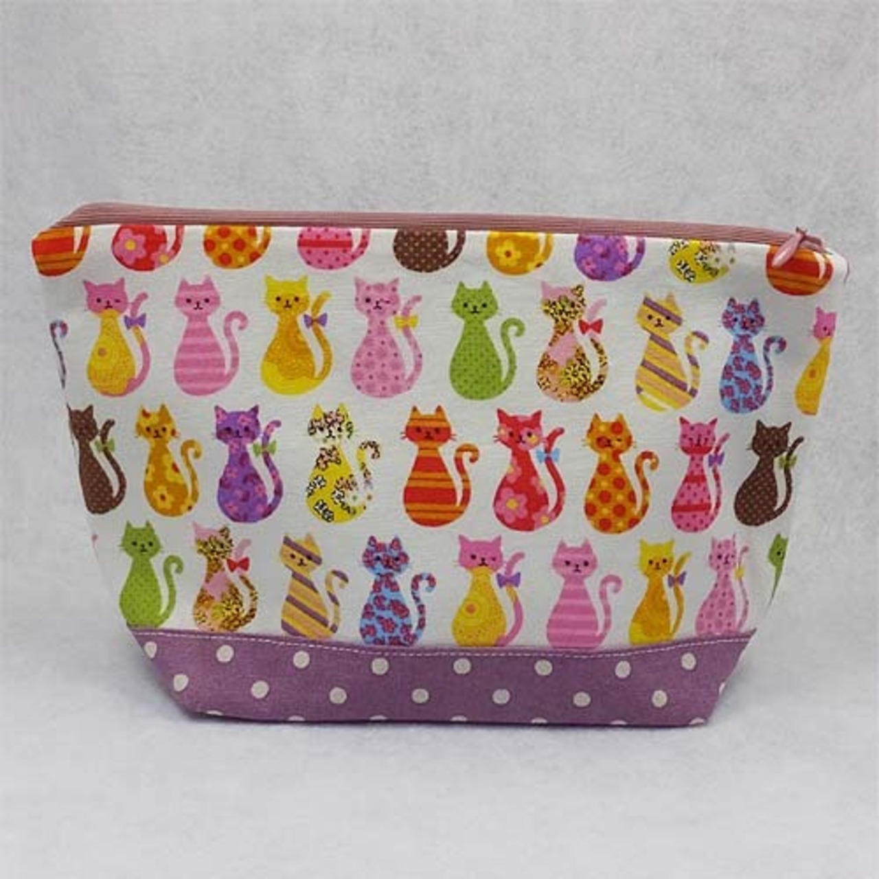 ハンドメイド 猫&水玉柄立体ポーチ 22cm A ネコ キャット