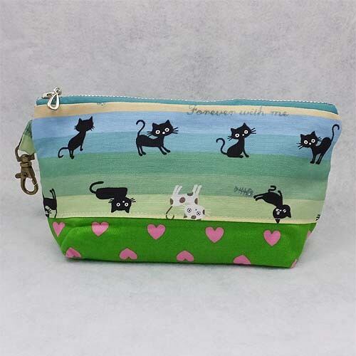 ハンドメイド 猫&ハート柄立体ポーチ 20cm O ネコ キャット