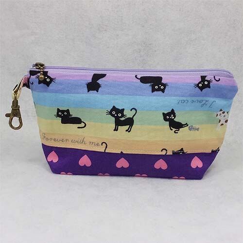 ハンドメイド 猫&ハート柄立体ポーチ 20cm L ネコ キャット