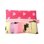 ハンドメイド ファスナー付猫&ハート柄ポケットティッシュカバー L ネコ キャット