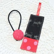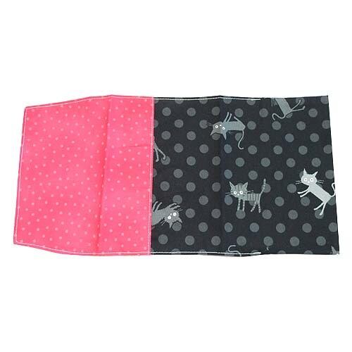 ハンドメイド 猫&水玉柄ブックカバー(文庫本サイズ) しおり&バンド付き Q ネコ キャット