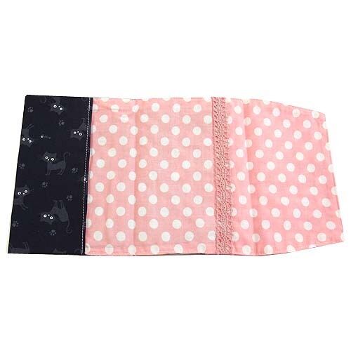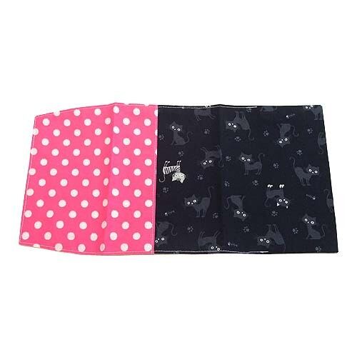 ハンドメイド 猫&水玉柄ブックカバー(文庫本サイズ) しおり&バンド付き B ネコ キャット