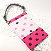ハンドメイド 猫&ハート柄スマホポーチ ケース P ネコ キャット