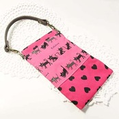ハンドメイド 猫&ハート柄スマホポーチ ケース C ネコ キャット