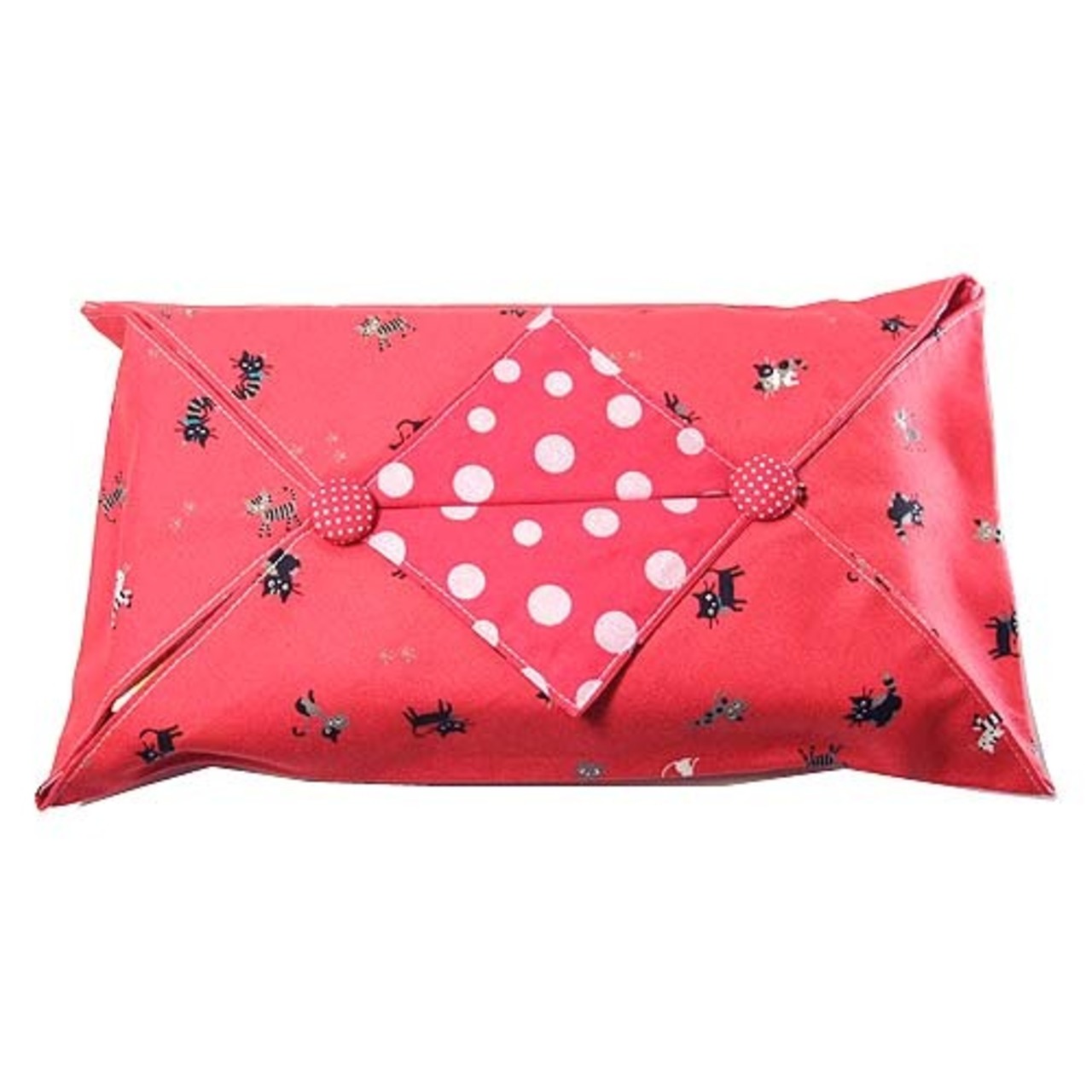 ハンドメイド 猫&水玉柄ティッシュボックスケース D ネコ キャット