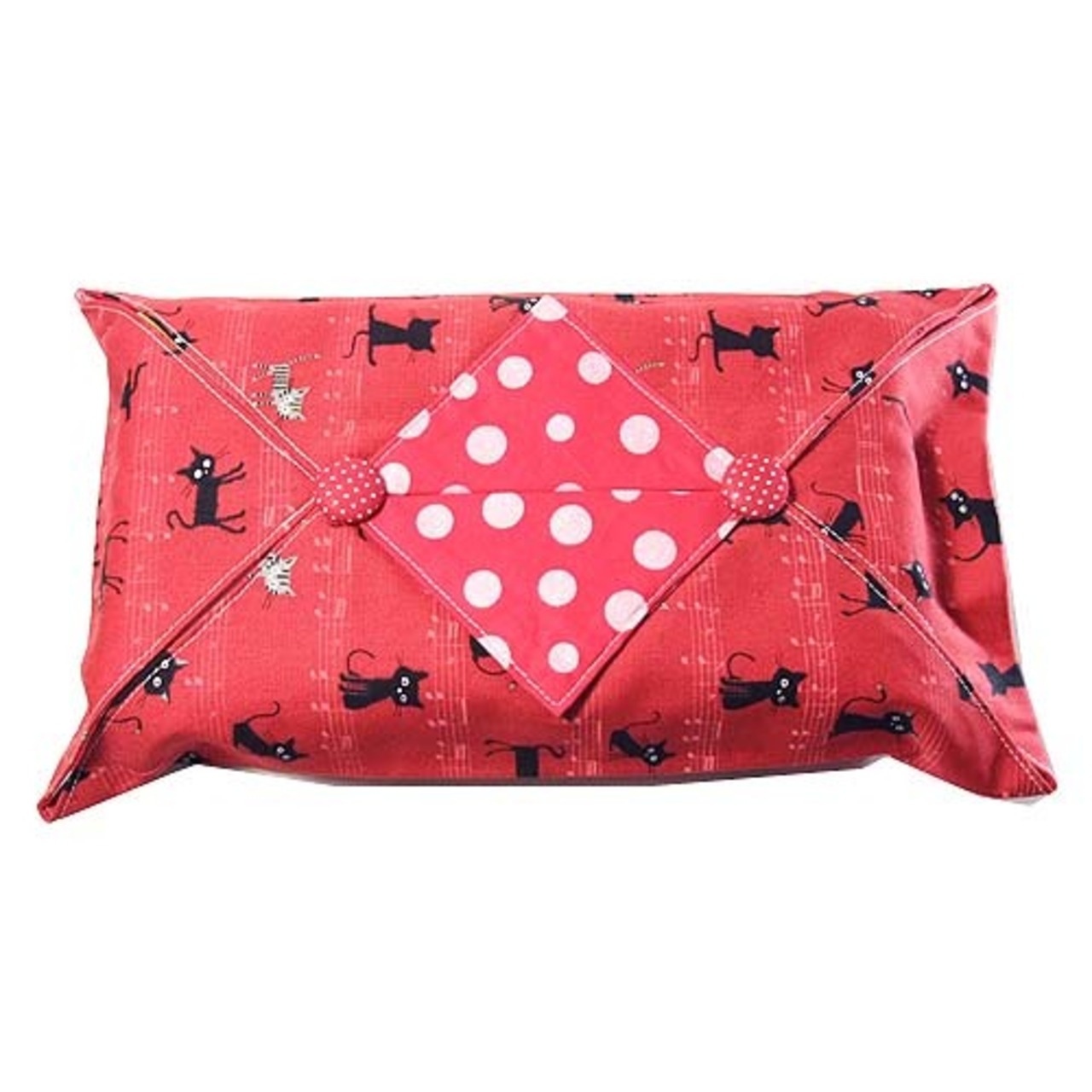 ハンドメイド 猫&水玉柄ティッシュボックスケース C ネコ キャット