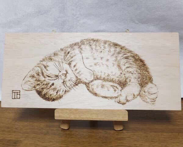 藤重日生 手描き焼き絵 ウッドバーニング fuji140012 猫 ネコ キャット