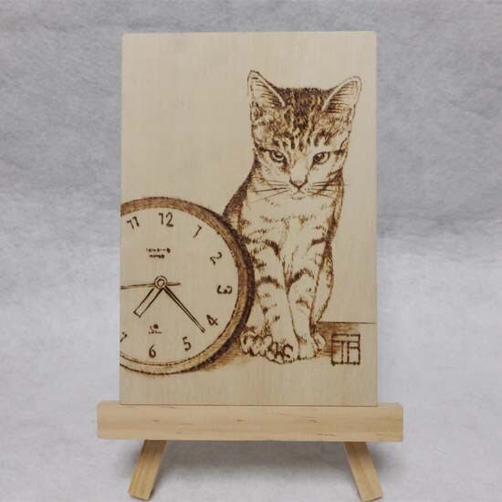藤重日生 手描き焼き絵 ウッドバーニング fuji140002 猫 ネコ キャット
