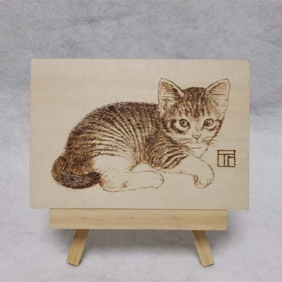 藤重日生 手描き焼き絵 ウッドバーニング fuji140001 猫 ネコ キャット