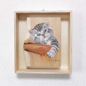 可愛らしい子猫を木板に描いて天然木の箱額に入れました。