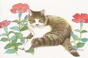 藤重日生 猫絵カード 「フシグロセンソウと猫」 ポストカードサイズ fuji120022