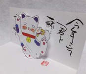 可愛らしい招き猫のイラストと福を呼ぶ言葉がうれしい、猫好きにはたまらない立体猫絵カードです。