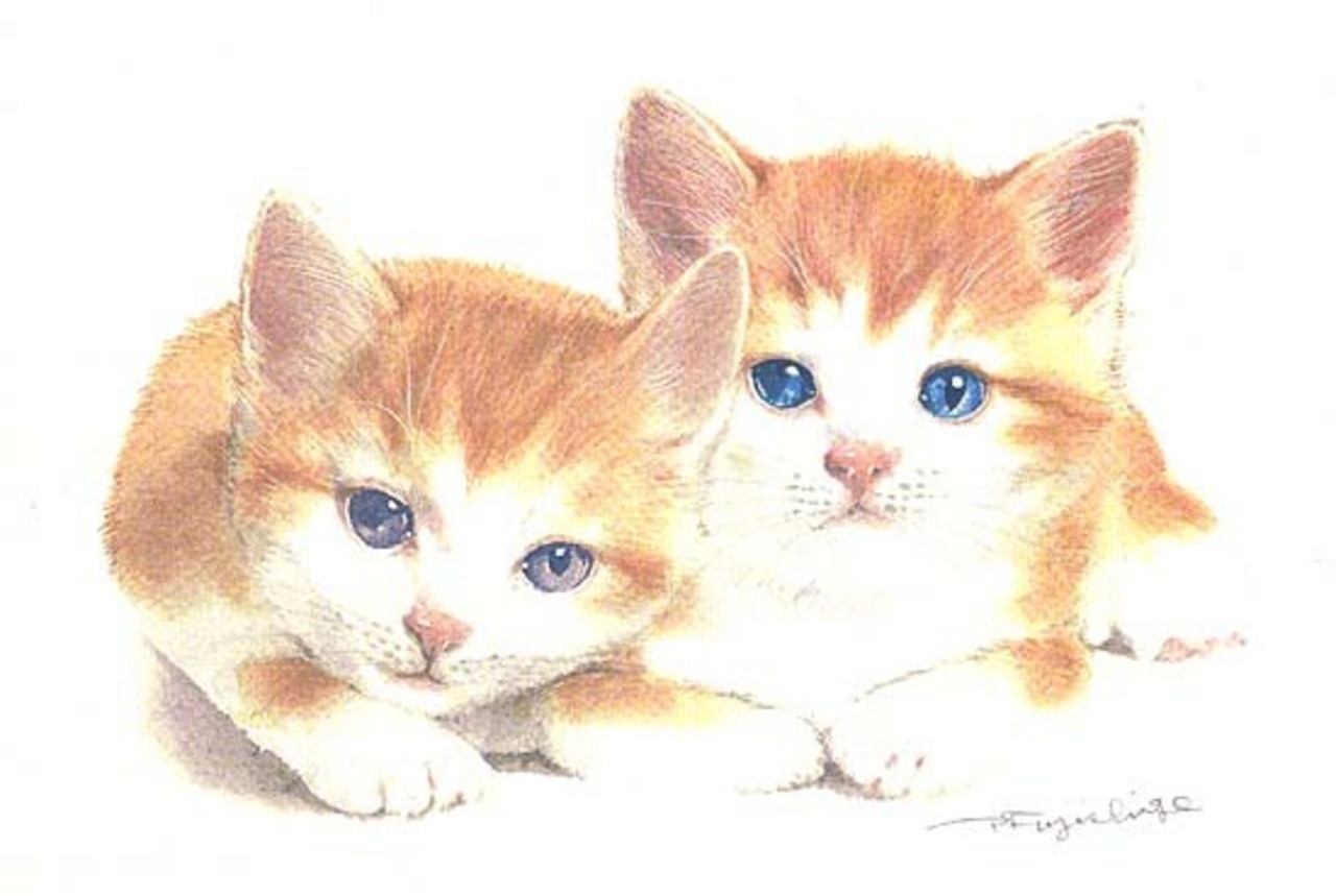 藤重日生 猫絵カード リアル水彩色紙絵 ポストカードサイズ fuji010015