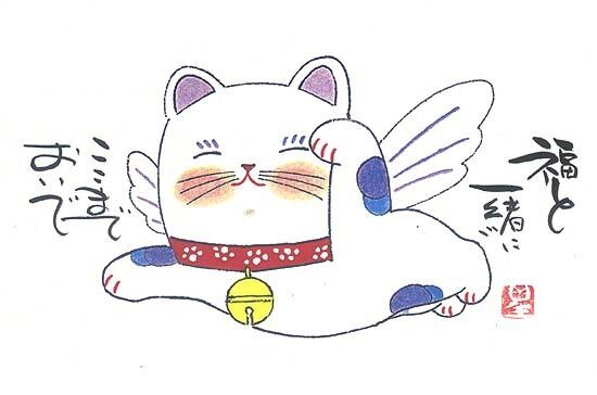 藤重日生 猫絵カード 招き猫カード ポストカードサイズ fuji030011