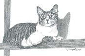 藤重日生 モノクロ猫絵カード ポストカードサイズ fuji070010